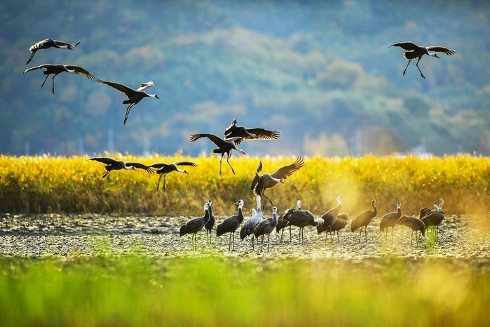 | ▲순천만습지를 찾는 흑두루미들/순천시 제공 |