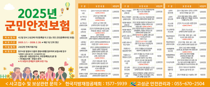 2025년 고성군 군민안전보험 보장항목은 다음과 같다.