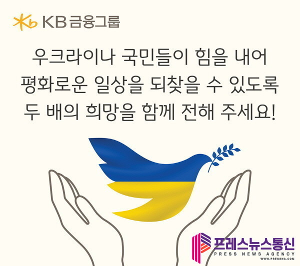 KB금융 관계자는 “전쟁으로 힘겨운 시간을 보내고 있는 우크라이나 국민들이 힘을 내는데 작은 도움이 되길 바란다”며, “앞으로도 KB금융그룹은 평화로운 세계를 위해 그리고 재난으로 고통받는 분들을 위해, 기업 시민으로서의 인도적 지원과 사회적 책임을 다하겠다”고 말했다.
