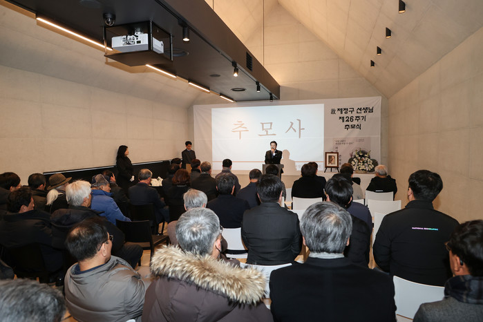 | ▲고성군 출신으로 평생을 가난한 사람들을 위해 헌신하며 ‘빈민의 대부’라 불리는 故 제정구 선생의 26주기 추모식이 2월 8일 고성군 대가면 제정구커뮤니티센터에서 아름다운 사람 제정구 기념사업회 주관으로 열렸다. (사진=고성군) |
