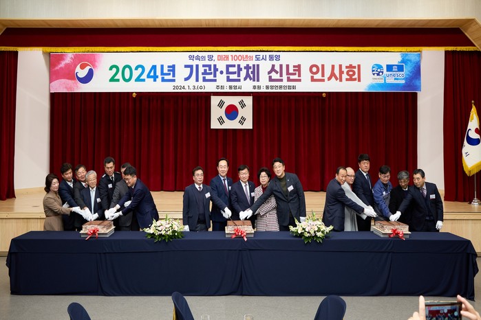이 자리에서 천영기 통영시장은 문체부 지정 ‘대한민국 문화도시’사업의 전국 7개 권역 13곳 조성계획 승인에 우리시가 선정된 기쁜 소식을 공유하며 “2024년 갑진년에도 시민의 삶이 편안하고 더 행복해질 수 있도록 통영 발전과 시민을 위해 최선을 노력을 다하겠다”며 특히 “통영시가 남해안 관광의 중심이자 글로벌 해양관광도시로 우뚝 설 수 있도록 더 열심히 뛰겠다”고 밝혔다.