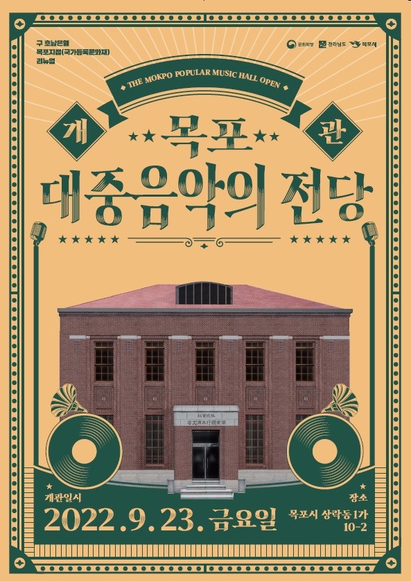 시는 오는 23일 오후 4시50분 상락동1가에 위치한 구)호남은행 목포지점(이하 호남은행) 건물에서 박홍률 목포시장, 김원이 국회의원, 문차복 시의장, 시의원, 문화재청 관계자 등이 참석한 가운데 ‘목포 대중음악의 전당 오픈식’을 개최한다.