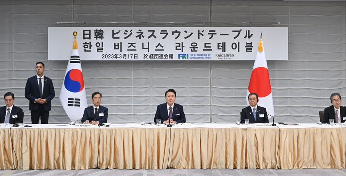 이는 윤석열 대통령이 양국의 대표 기업인들이 참석한 한일 경제인 비즈니스 라운드테이블에서 “한일 관계개선을 계기로 양국 기업인들이 더 희망을 갖고 역동적으로 사업할 수 있기를 바란다”며 “정부도 관심을 가지고 규제도 풀고 선제적인 지원을 하겠다”고 선포한 것에 대한 호응이다.