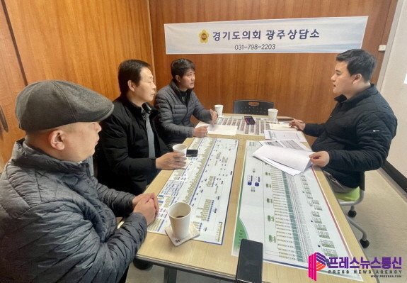 [프레스뉴스] 김대일 기자= 경기도의회 건설교통위원회 유형진(국민의힘, 광주4)의원은 3일 광주상담소에서 광주시 개인택시운송사업조합원 관계자들과 함께 「경기도 택시요금(심야할증) 조정」과 관련하여 애로사항 청취 및 논의를 위한 자리를 가졌다.