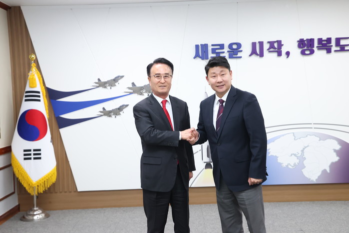 | ▲박동식 사천시장과 창원대학교 박민원 총장 협력 방안 논의/사진=사천시 |