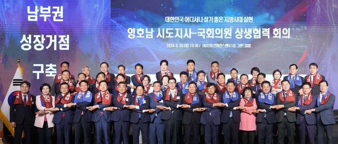 [전남=프레스뉴스] 강래성 기자= 전라남도는 30일 영호남 시도지사 협력회의가 서울 한국경제인협회(FKI타워 컨퍼런스센터)에서 지역 국회의원 초청 상생협력 회의를 개최하고, 영호남 균형발전을 위한 협력을 다짐했다고 밝혔다.
