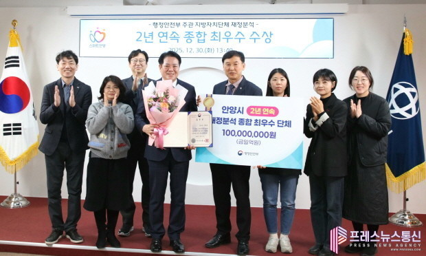 [프레스뉴스] 장현준 기자= 안양시는 행정안전부에서 실시한 ‘2025년(2024 회계연도) 지방재정분석’에서 종합점수 ‘가’등급을 받아 2년 연속 ‘종합 최우수’지자체로 선정됐다.