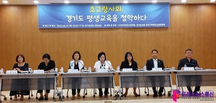[프레스뉴스] 김대일 기자= 경기도의회 여성가족평생교육위원회 정윤경(더불어민주당, 군포1) 의원이 좌장을 맡은 ‘초고령화시대, 평생교육을 철학하다’ 토론회가 지난 8월 24일(목) 오후 도의회 대회의실에서 개최됐다. 이번 토론회는 경기도의회 여성가족평생교육위원회와 (사)한국공공사회학회가 공동으로 주최해 고령화 시대 평생교육 발전방안을 마련하기 위해 개최됐다.