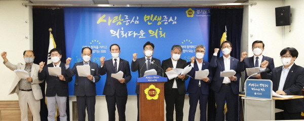 경기도의회 김동철 의원의 사회로 진행된 성명서 발표는 되었으며 일본정부의 올림픽 지도의 독도표기를 규탄하고, 이를 철회시키기 위해 마련됐다.