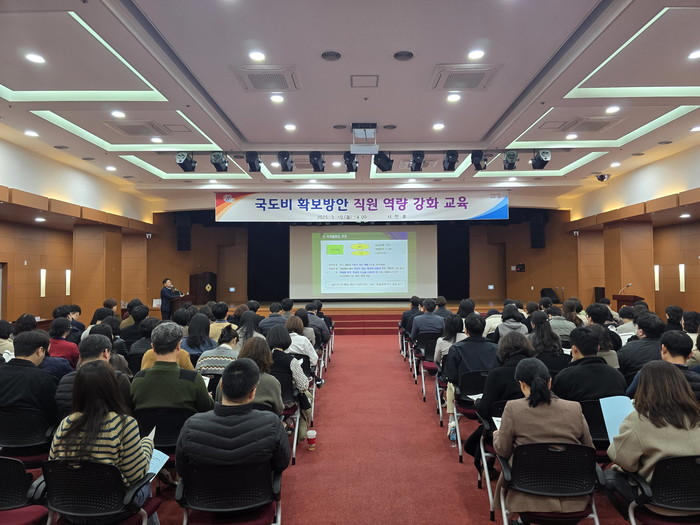 | ▲진주시는 10일 시청 2층 시민홀에서 전 부서 주무팀장과 예산담당자, 현안사업 추진 담당자 등 직원 150여 명을 대상으로 ‘2026년도 국비 확보를 위한 직원 역량 강화 교육’을 실시했다. (사진=진주시) |