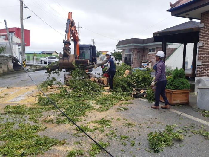이번 복구 활동에는 청년회, 중기협회 회원 등으로 구성된 지역자율방재단과 관계 공무원 등 20여 명이 참가했다.이들은 태풍으로 가로수가 도로로 전도돼 차량교행이 불가능한 마을입구와 붕괴된 버스승강장 등 시설물을 복구하고 도로에 방치된 쓰레기를 수거했다.