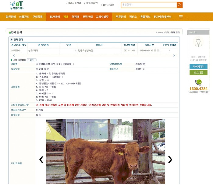 [전남=프레스뉴스] 강래성 기자= 한국농수산식품유통공사(사장 김춘진)는 강릉축협(조합장 신숙승)과 힘을 합쳐 기존 오프라인 위주로 진행되는 가축 경매를 온라인 경매로 지난 10월 29일부터 11월 4일까지 시범 진행했다.