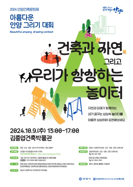 또 9일 오후 1시부터 5시까지 유치원생・초등학생이 참여하는 ‘아름다운 안양 그리기 대회’가 열릴 예정으로 현재 ‘안양건축문화제 공식 홈페이지’에서 사전 접수가 진행 중이며, 현장 접수도 가능하다.