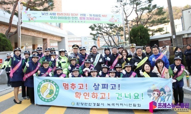 이날 최대호 안양시장과 김희자 만안녹색어머니회장, 최성규 안양만안경찰서장, 이승희 안양과천교육지원청 교육장, 유한호 만안구청장 등 100여명은 학생들에게 등하굣길 교통안전의 중요성을 설명하고 교통사고 예방을 위한 안전수칙 등을 안내했다.