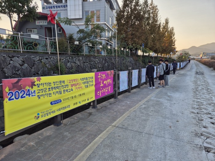| ▲고성군(군수 이상근)은 지난 6일부터 고성안뜰 경관농업단지에서 2024년 성인문해교육의 성과를 알리는 야외 시화전을 개최하고 있다고 밝혔다. (사진=고성군) |