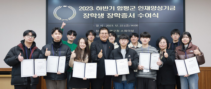 [전남=프레스뉴스] 차윤기 기자= 전남 함평군이 지난 22일 함평군청 소회의실에서 2023년 하반기 함평군 인재양성기금 장학생 장학증서 수여식을 개최했다.