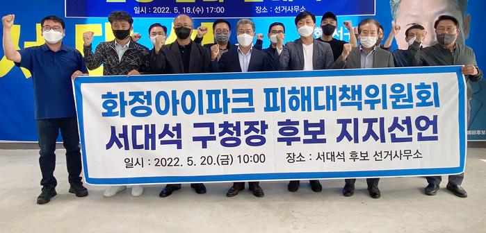 | ▲화정 아이파크 피해대책위가 지지선언/서대석 서구청장 후보측 제공 |