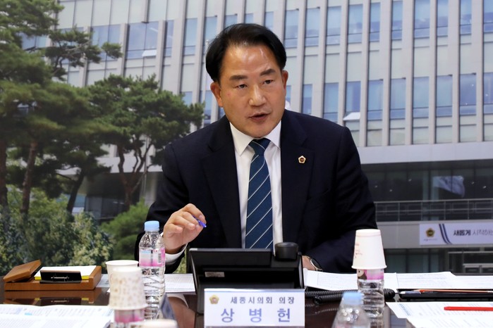 ▲세종시의회 상병헌 의장이 지난 8일 ‘지방의회의 독립성 강화를 위한 제도개선 연구용역’ 최종보고회를 개최했다.(사진=세종시의회) |