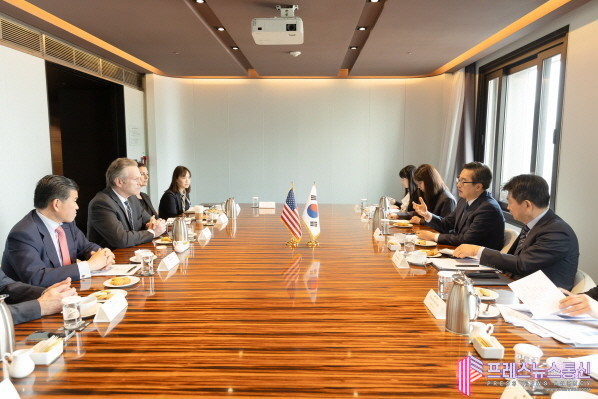 | ▲25일 오전 더플라자호텔에서 김동연 경기도지사가 마이크 던리비(Mike Dunleavy) 미국 알래스카 주지사와 면담을 하고 있다.(사진=경기도) |