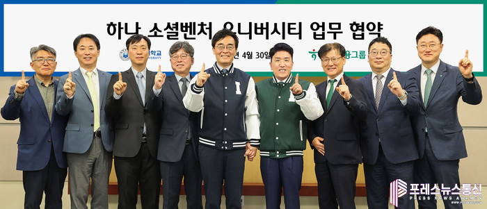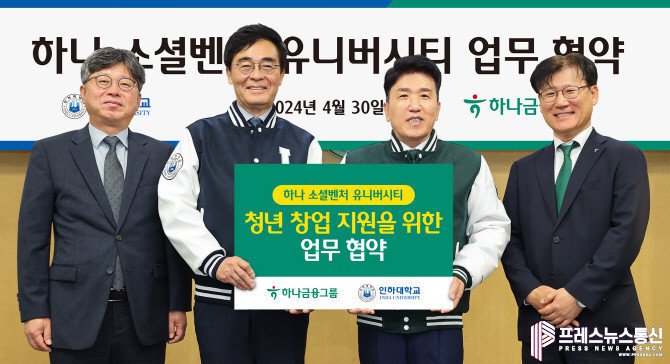 [프레스뉴스] 류현주 기자= 하나금융그룹(회장 함영주)은 인하대학교(총장 조명우)와 지난달 30일 인천 미추홀구 소재 인하대학교 본관에서 지역 청년 창업 활성화를 위한 업무협약을 체결하고, 그룹의 청년 창업가 육성 프로그램인 「하나 소셜벤처 유니버시티」 3기 참가자를 모집한다고 밝혔다.