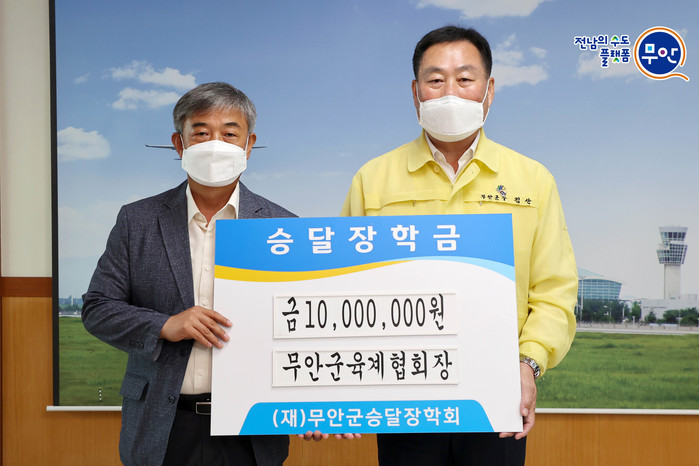 [전남=프레스뉴스] 강래성 기자=무안군(군수 김산)은 지난 12일 육계협회 무안지부(회장 김화실)에서 승달장학회에 장학금 1000만원을 기탁했다고 밝혔다.