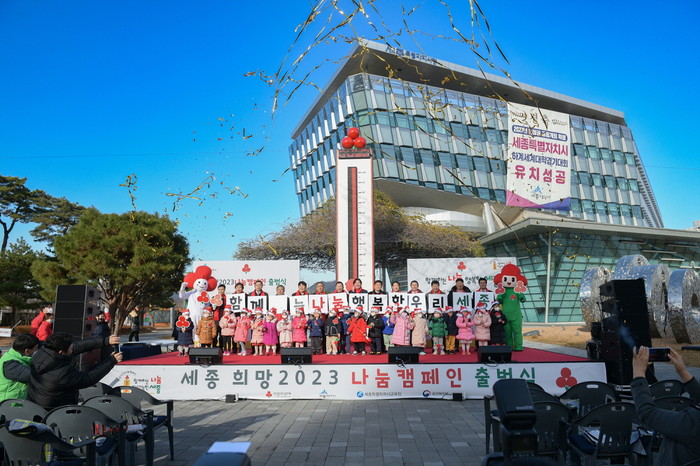 [프레스뉴스] 김교연 기자=세종시가 세종사회복지공동모금회(회장 박상혁)와 1일 시청 광장에서 ‘희망2023나눔캠페인’ 출범식을 열고 사랑의 온도탑을 제막했다.