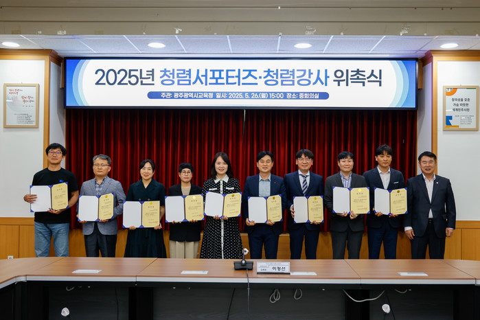 이정선 교육감은 “청렴 서포터즈와 청렴 강사의 자발적인 참여와 열정이 우리 교육청의 청렴문화 확산에 큰 힘이 될 것”이라며 “현장과 적극 소통하며 실질적인 변화를 만들어 가겠다”고 말했다.