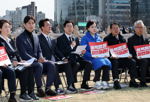 | ▲박찬대 더불어민주당 원내대표가 14일 서울 광화문 앞에서 열린 현장 최고위원회의에서 모두발언을 하고 있다.(사진= 뉴스1) |