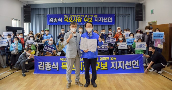 그러면서 이들 단체는 “앞으로 4년 동안 장애인 복지공약을 가장 성실히 이행할 수 있는 후보라고 생각해 목포시 장애인 단체는 더불어민주당 김종식 후보를 적극 지지한다”고 이유를 밝혔다.