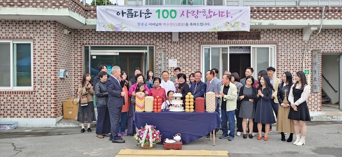 이날 행사에는 3남 4녀의 자녀와 손주, 증손주 등 4대가 모인 가족과 마을 주민 등 200여 명이 참석해 어르신의 무병장수를 기원하고, 아랑장구 공연과 자녀들의 노래로 어르신의 생신을 축하했다.