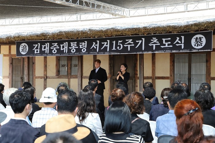 | ▲지난 18일, 전라남도 문화유산으로 지정된 ‘신안 김대중 대통령 생가’에서 진행된 15주기 추도식 (추모공연)/신안군 제공 |
