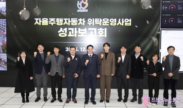 [프레스뉴스] 장현준 기자= 안양시가 지난 23일 스마트도시통합센터에서 ‘자율주행자동차 위탁운영사업 성과보고회’를 개최하고 운영성과 공유 및 향후 추진계획 등을 논의했다고 24일 밝혔다.