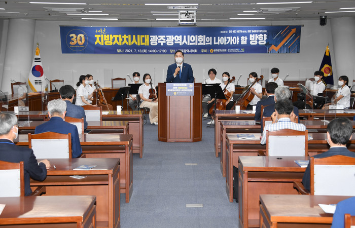 [광주=프레스뉴스] 강래성 기자=광주광역시의회(의장 김용집)의 개원 30주년을 맞아 다채롭게 진행됐던, 비전 선포식, 특별전시회, 청소년 의회 등 기념행사가 13일, 지방자치 전문가, 시민들과 함께하는 ‘정책토론회(세미나)’를 끝으로 마무리 됐다.