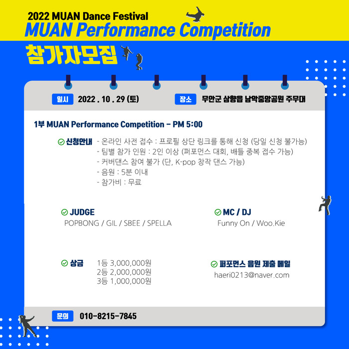[전남=프레스뉴스] 강래성 기자= 전남 무안군(군수 김산)은 오는 28일부터 30일까지 개최하는 제2회 무안YD페스티벌 연계행사인 스트릿댄스 페스티벌 참여자를 오는 28일까지 모집한다고 밝혔다.