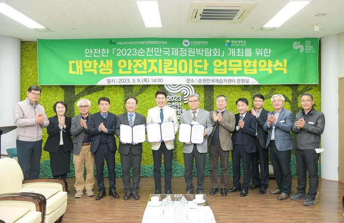 이날 행사에는 노관규 이사장(순천시장)과 성동제 순천제일대학교 총장, 김성홍 청암대학교 총장 직무대행이 참석했다. 조직위와 양 대학교는 안전학과, 보건학과, 소방학과 등 재학생으로 구성된 50명의 안전지킴이단 모집부터 교육, 운영까지 안전한 행사 운영을 위해 적극 협력하기로 했다.