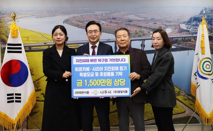 [전남=프레스뉴스] 강래성 기자= 전라남도 나주시청 공무원들과 지역 업체가 최근 지진으로 큰 피해를 입은 튀르키예·시리아 난민들을 돕고자 십시일반 온정을 모았다.