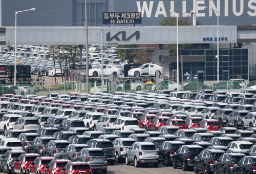 ▲10일 경기 평택시 포승읍 평택항 자동차전용부두에 수출용 차량들이 세워져 있다. (사진= 뉴스1) |