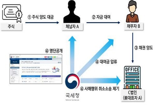 주요 사례로는 제3자를 우회해 주식 양도대금을 특수관계법인에 은닉한 개인체납자가 있다. 또 전(前) 대표자에게 토지 양도대금을 빼돌린 체납 법인, 회사 자금을 대표자·특수관계법인에 대여한 체납 법인 등이 있다.