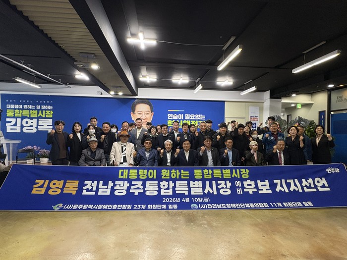 [프레스뉴스] 강래성 기자= 10일 광주에서 광주·전남 장애인단체들이 김영록 전남·광주 통합특별시장 예비후보에 대한 공식 지지를 선언하며 지역 통합 행정에 대한 기대감을 드러냈다.