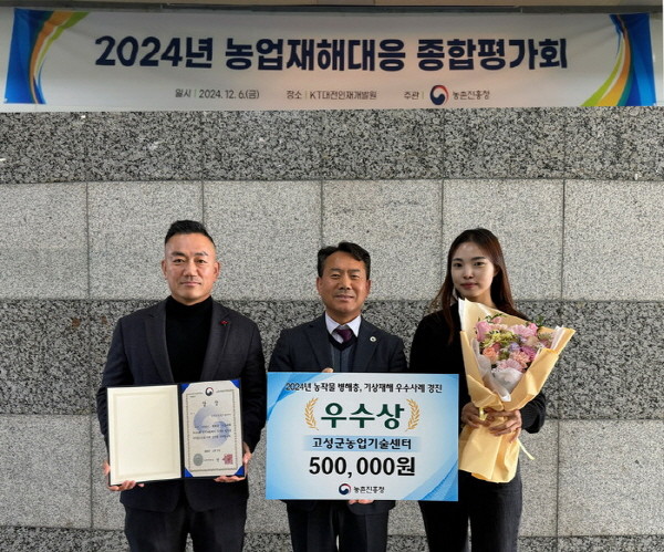 | ▲고성군농업기술센터는 지난 6일 농촌진흥청 주관 ‘2024년 병해충·기상재해 우수사례 경진대회’ 우수상을 수상했다. (사진=고성군) |