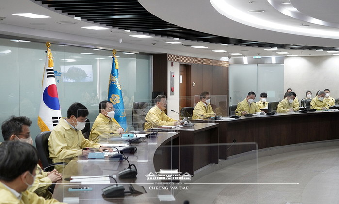 ▲ 문 대통령이 7일 청와대 국가위기관리센터에서 코로나19 중앙재난안전대책본부 회의를 주재하고 있다. (사진=청와대) |