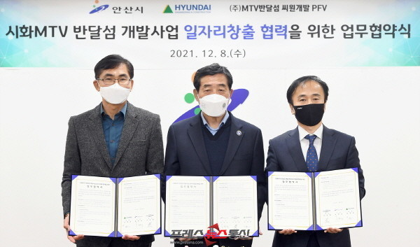 [프레스뉴스] 장현준 기자= 안산시(시장 윤화섭)는 8일 ‘시화MTV 반달섬 개발사업에 따른 일자리 창출협력 업무협약’을 현대건설-㈜MTV 반달섬 씨원개발PFV와 체결했다.