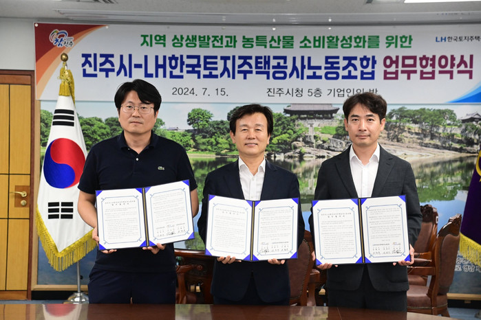 LH한국토지주택공사노동조합 공동 위원장은 “지역사회 상생발전과 농특산물 소비 활성화에 보탬이 될 수 있도록 진주시와 업무협약을 체결하게 되어 기쁘다”며 “앞으로 상호 긴밀히 협력하여 우수 농특산물 활성화와 지역경제 성장에 기여하겠다”고 말했다.