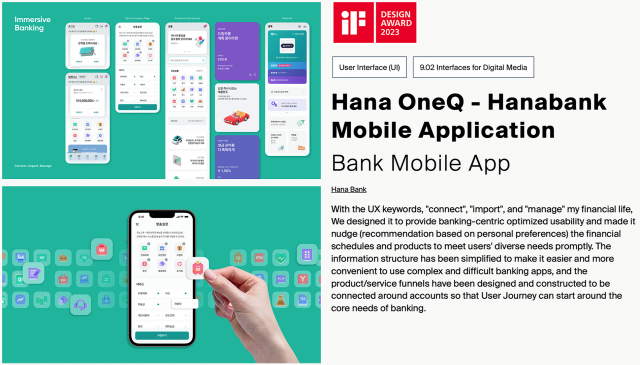 | ▲하나은행, iF 디자인 어워드(International Forum Design Award 2023) 『사용자 환경(UI) 부문』 수상(사진=하나은행) |