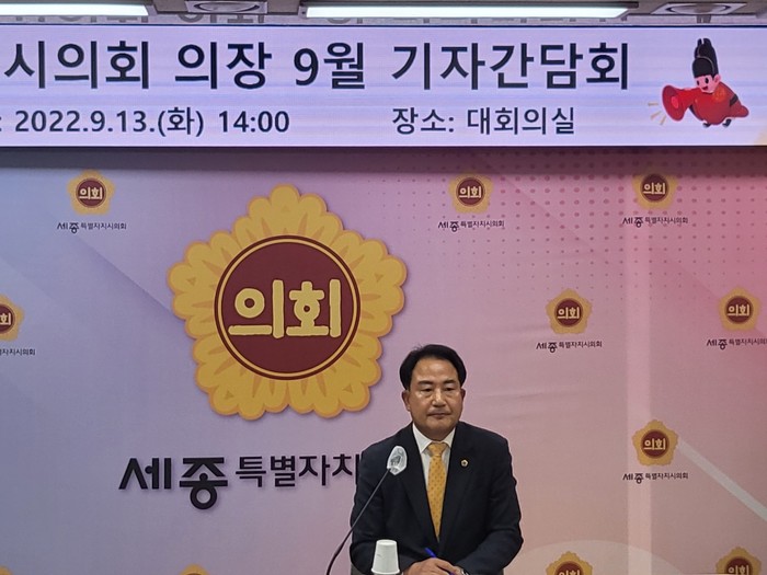 [프레스뉴스] 김교연 기자= 세종시의회 상병헌 의장이 13일 기자간담회를 열고 업무과중으로 두차례나 안타까운 사건이 있었다며 행정안전부의 기준인건비 집행율을 높여 인력을 충원해야 한다고 피력했다.