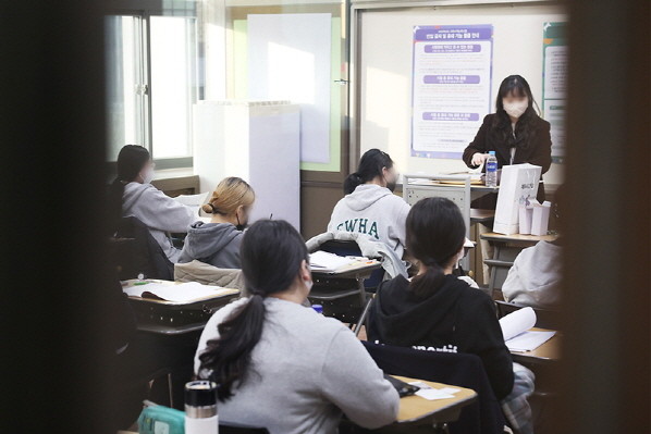 ▲ 2023학년도 대학수학능력시험일인 지난해 11월 17일 고등학교에 마련된 고사실에서 수험생들이 시험을 준비하고 있다. (사진=문화체육관광부 국민소통실) |