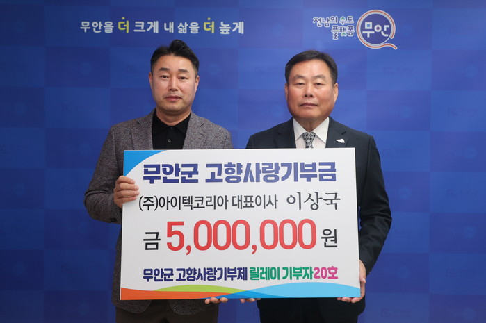 | ▲고향사랑릴레이 제20호 (주) 아이텍코리아 대표이사 이상국/무안군 제공 |