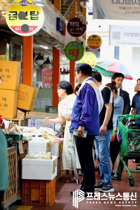 최 시장은 이틀에 걸쳐 전통시장 내 각 점포를 둘러보며 명절 물가동향을 파악했으며, 시장 상인들을 격려하고 애로사항을 청취했다.