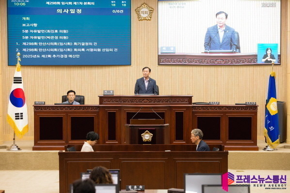 시의회는 이날 본회의장에서 시의원들과 시 집행부 관계자 등이 참석한 가운데 임시회를 여는 본회의를 개최하고, 의원 2명의 5분 자유발언 및 2025년도 제2회 추가경정예산안 제안설명 청취와 제298회 임시회 회기결정의 건, 예산결산특별위원회 구성결의안 등의 안건 의결을 실시했다.