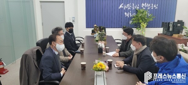 [프레스뉴스] 김대일 기자= 경기도의회 교육행정위원회 남종섭 위원장(더민주, 용인4)이 23일 교육행정위원장실에서 경기도교원단체총연합회 주훈지 회장, 용환주 사무총장 등 경기교총 관계자와 면담하고, 다양한 경기교육 현안사항에 대해 논의했다. 이 자리에는 황대호 의원(더민주, 수원4)도 함께 배석했다.